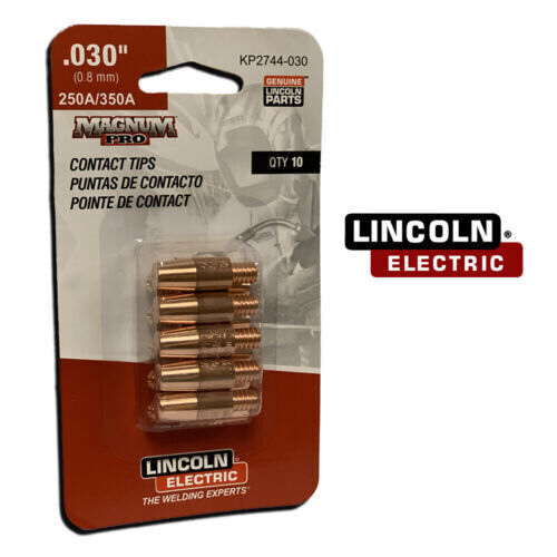 Lincoln KP2744-030 Copper Plus Contact Tip 350A, Standard .030″ (0.8 mm) 10/pack